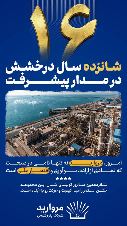 شانزدهمین سالروز تولیدی شدن پتروشیمی مروارید، جشن استمرار امید، کیفیت و حرکت رو به آینده است.
